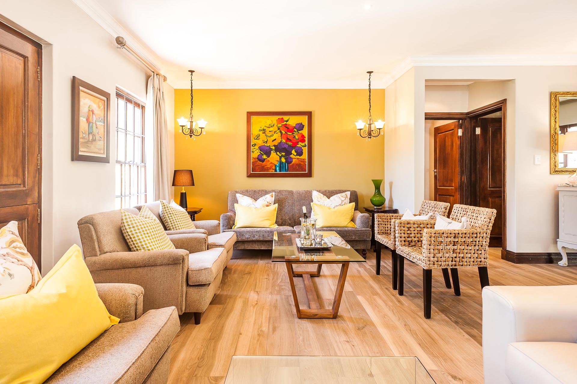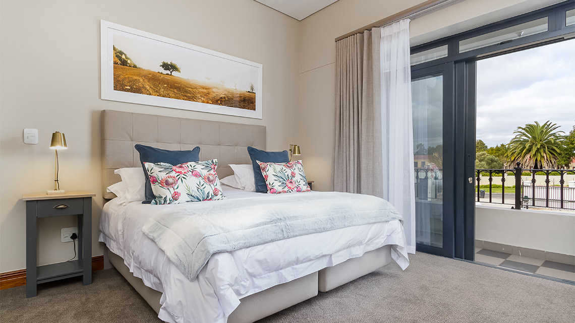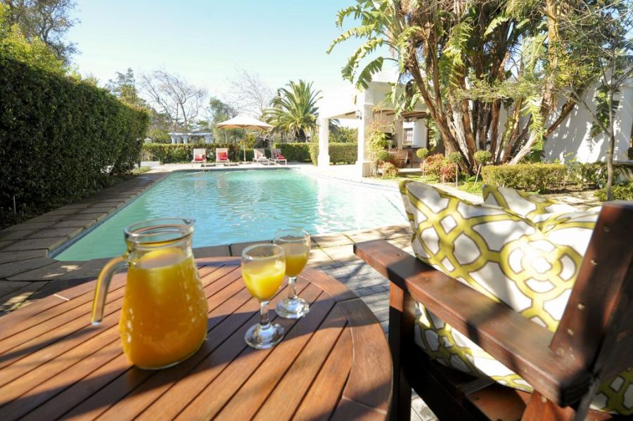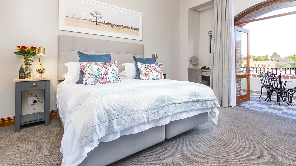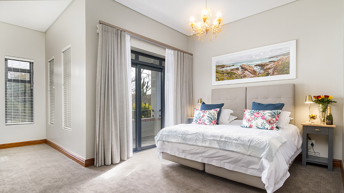 This beautiful double story property has five, very spacious bedrooms which are stylishly decorated following the latest decor trends. Room 21, “our honey moon suite”, is a double room with a spacious balcony overlooking the Hottentots-Holland Mountain range as well as the gardens of the guest house. It is the perfect room for brides to spend the evening before the wedding with their bridesmaids, in anticipation of the excitement of the “big day”.
